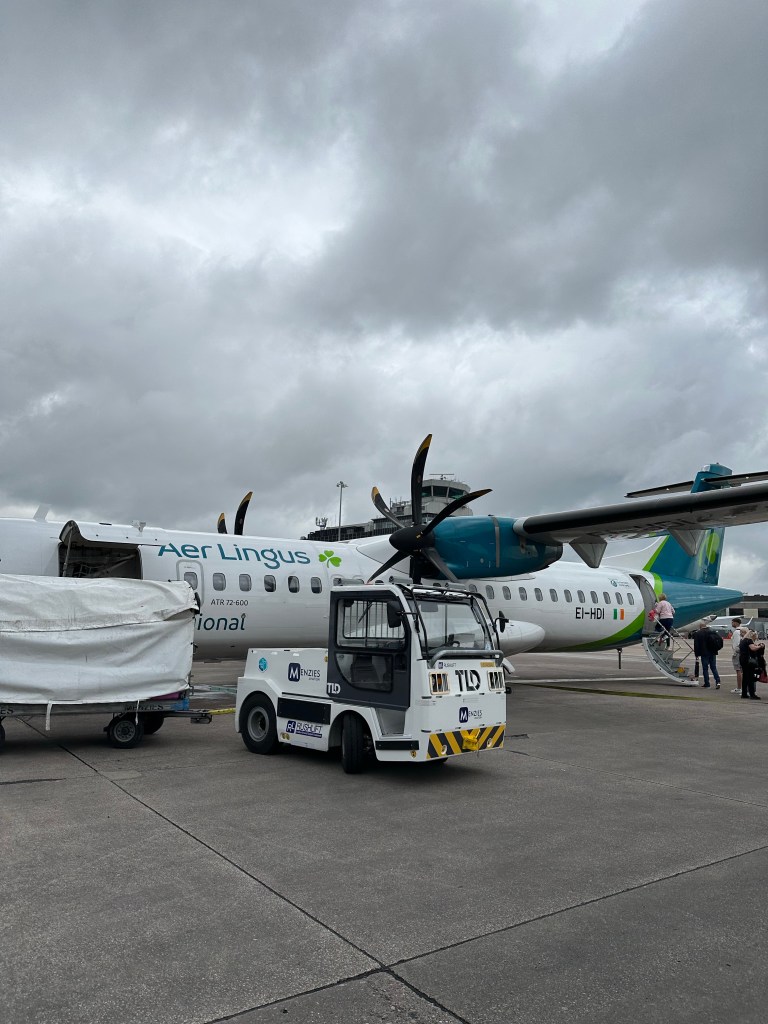 Our next flight (to Dublin) was on a propeller plane preheated to the temperature you can prepare a small personal pizza at. Admittedly I paid for a window seat as I am a motion sick person, but someone asked that I sit in the aisle so they could be next someone they know and I caved. I suffered nauseously in polite silence, a reflection of what I had learned about the British culture from my time in Manchester. (You’ll start to notice, I’m a bit of a worldly person.)